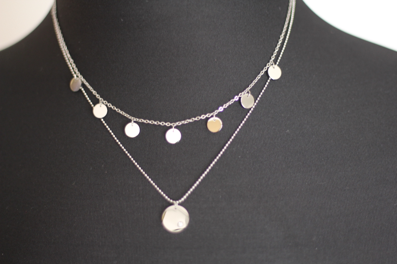 zweigliedrige Kette ´der ewige Kreis´ mit Stein und 7 Plättchen