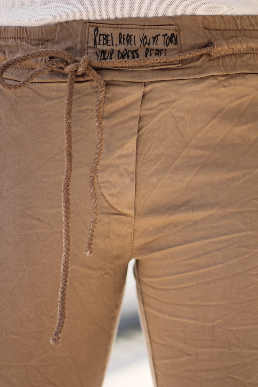 sportliche Fransenhose in braun mit Schrift- u. Tunnelzug in ONE SIZE