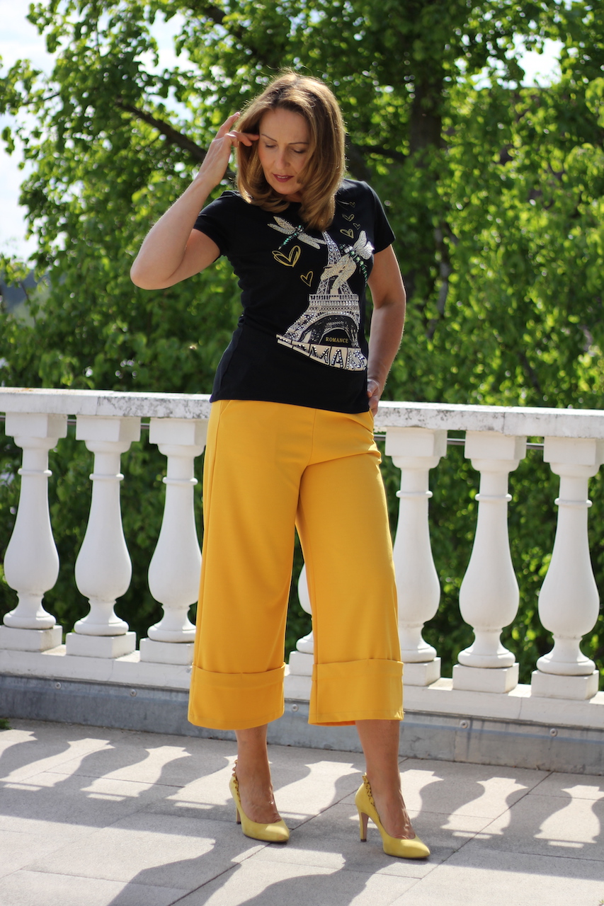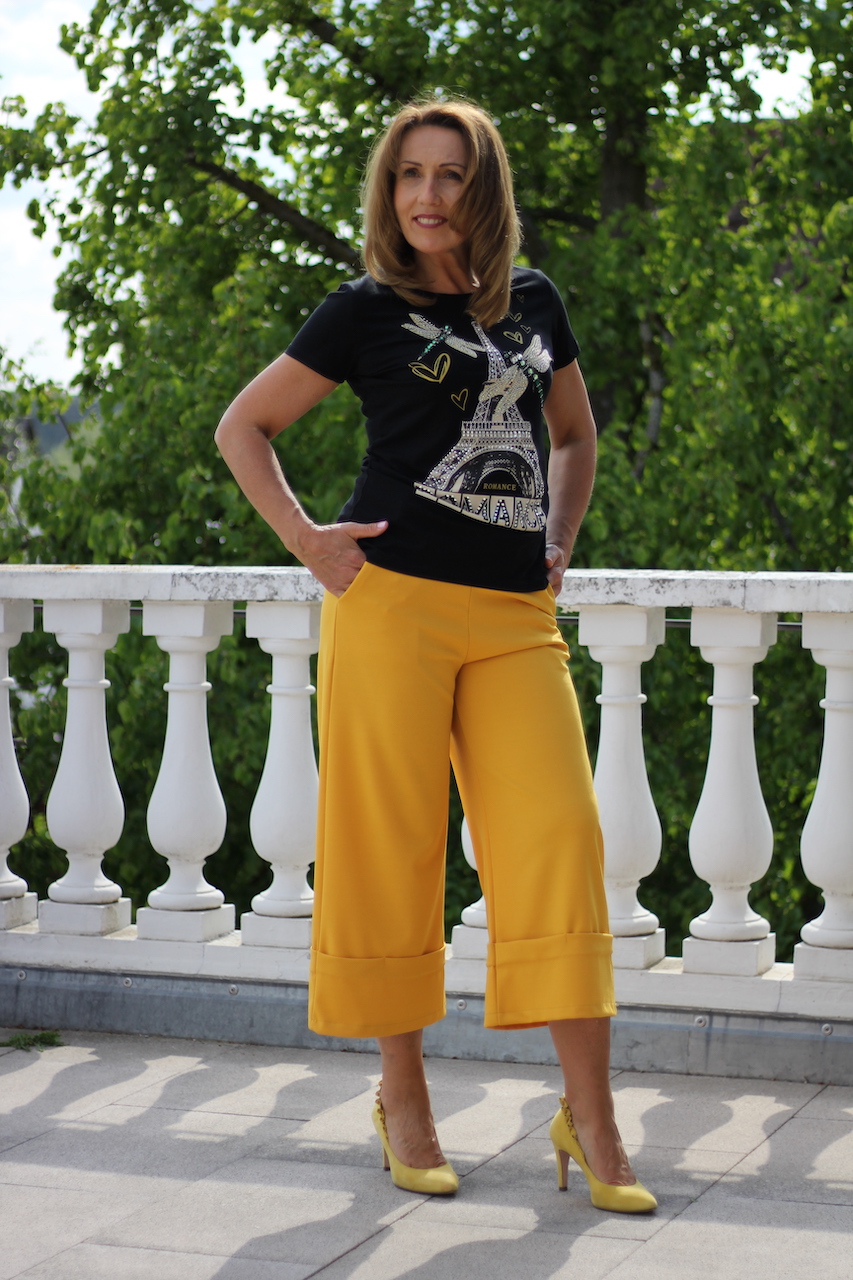 sommerliche Culotte Hose mit Gürtel in senf in ONE SIZE