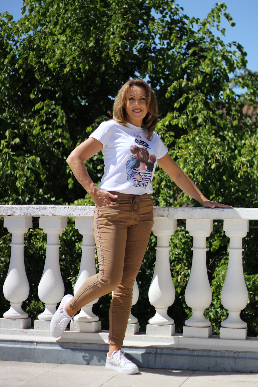 sportliche Hose mit Tunnelzug und Nieten in ONE SIZE