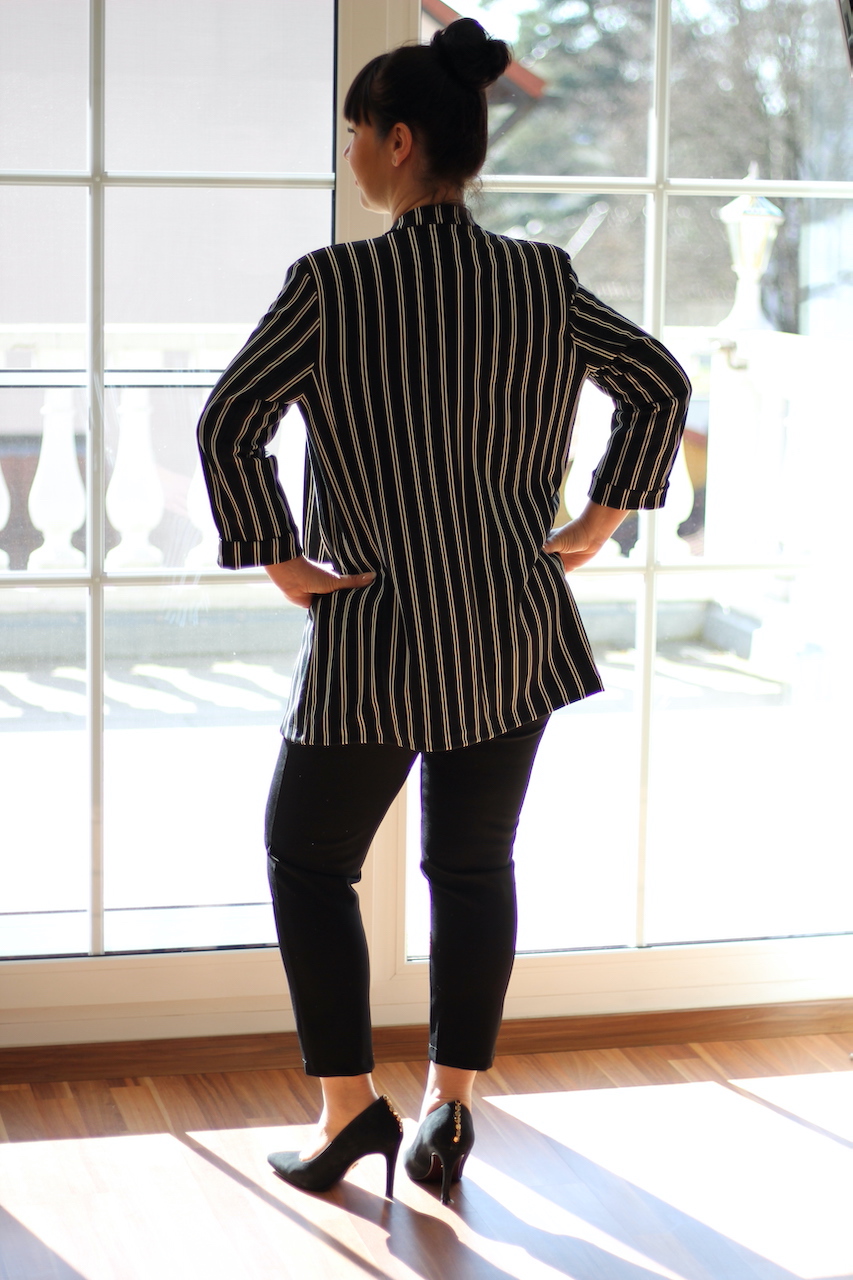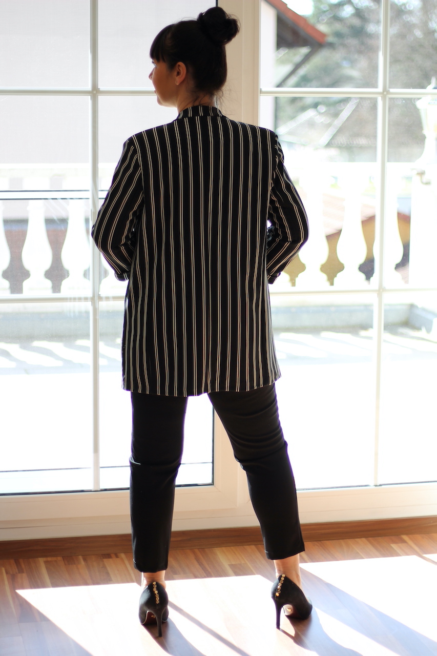 Longblazer schwarz-weiß gestreift mit 3/4 Ärmel