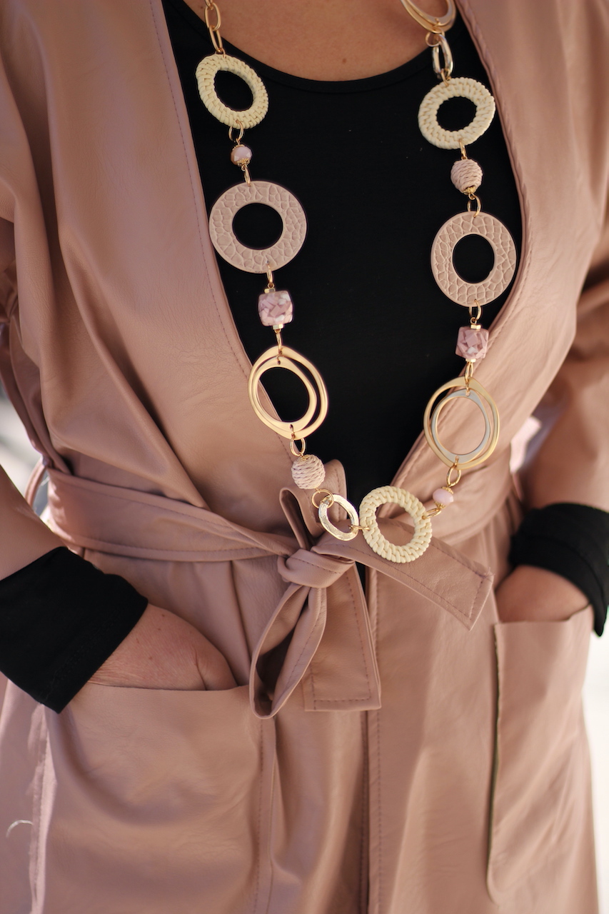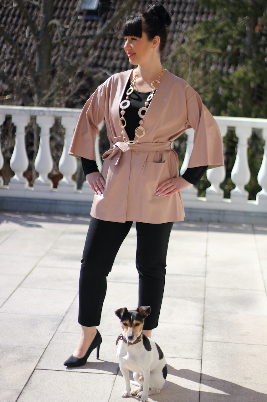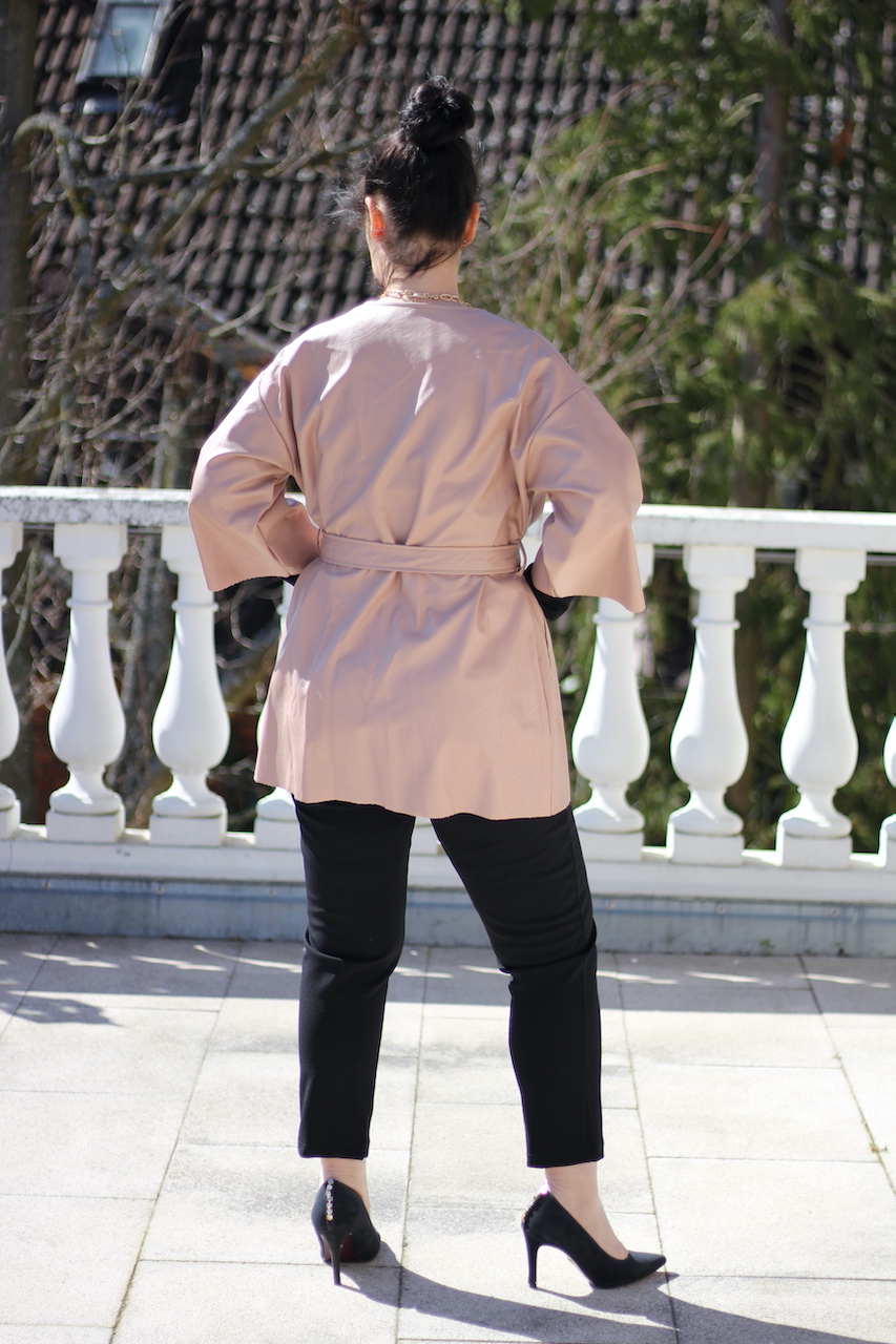 Mantel Lederimitat in rose mit Gürtel
