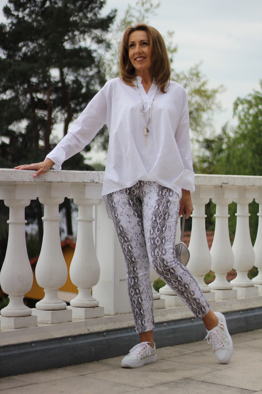 weiße Blue Monkey Skinny-Jeans ´Laura´ im Schlangenlook