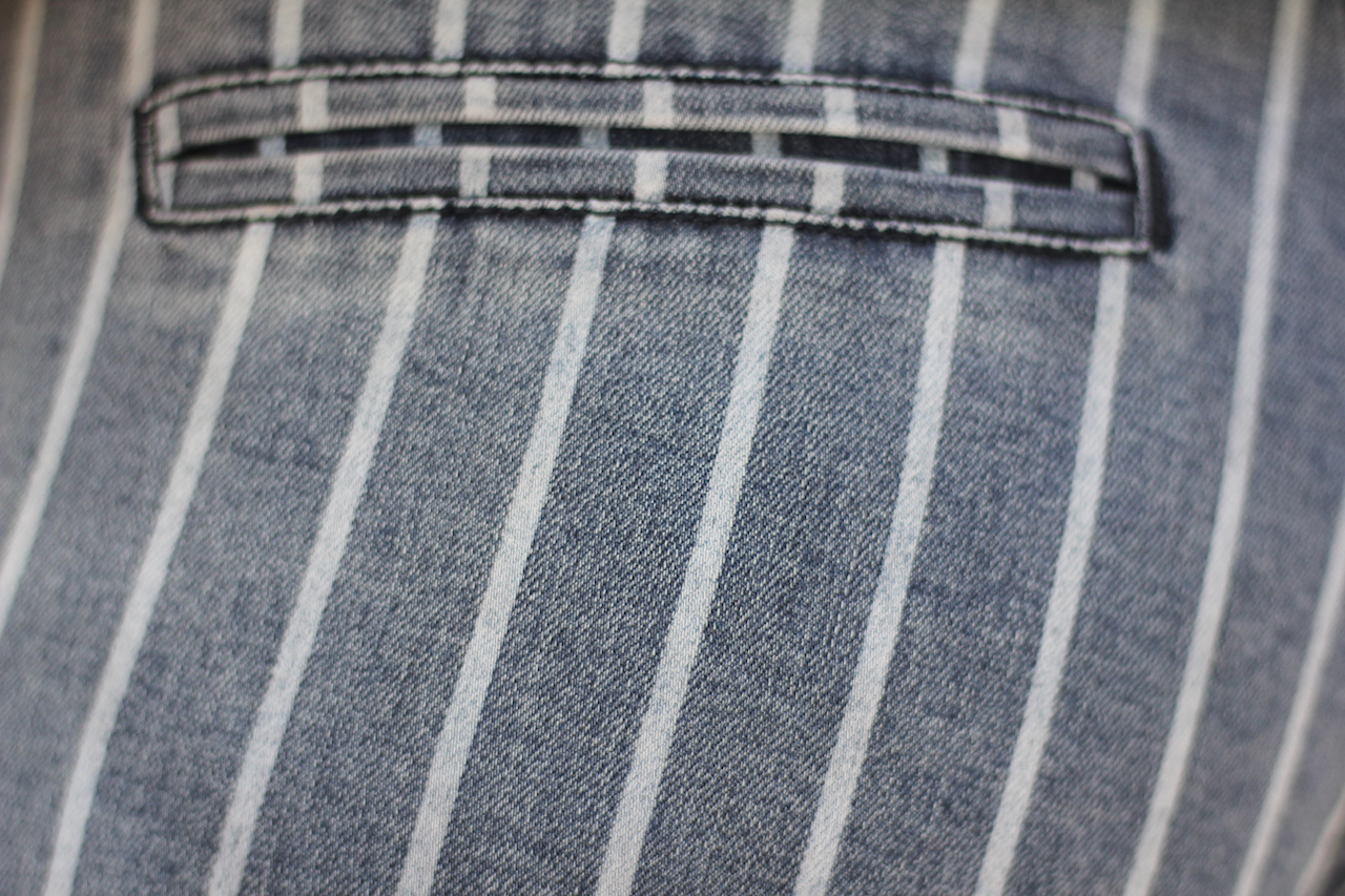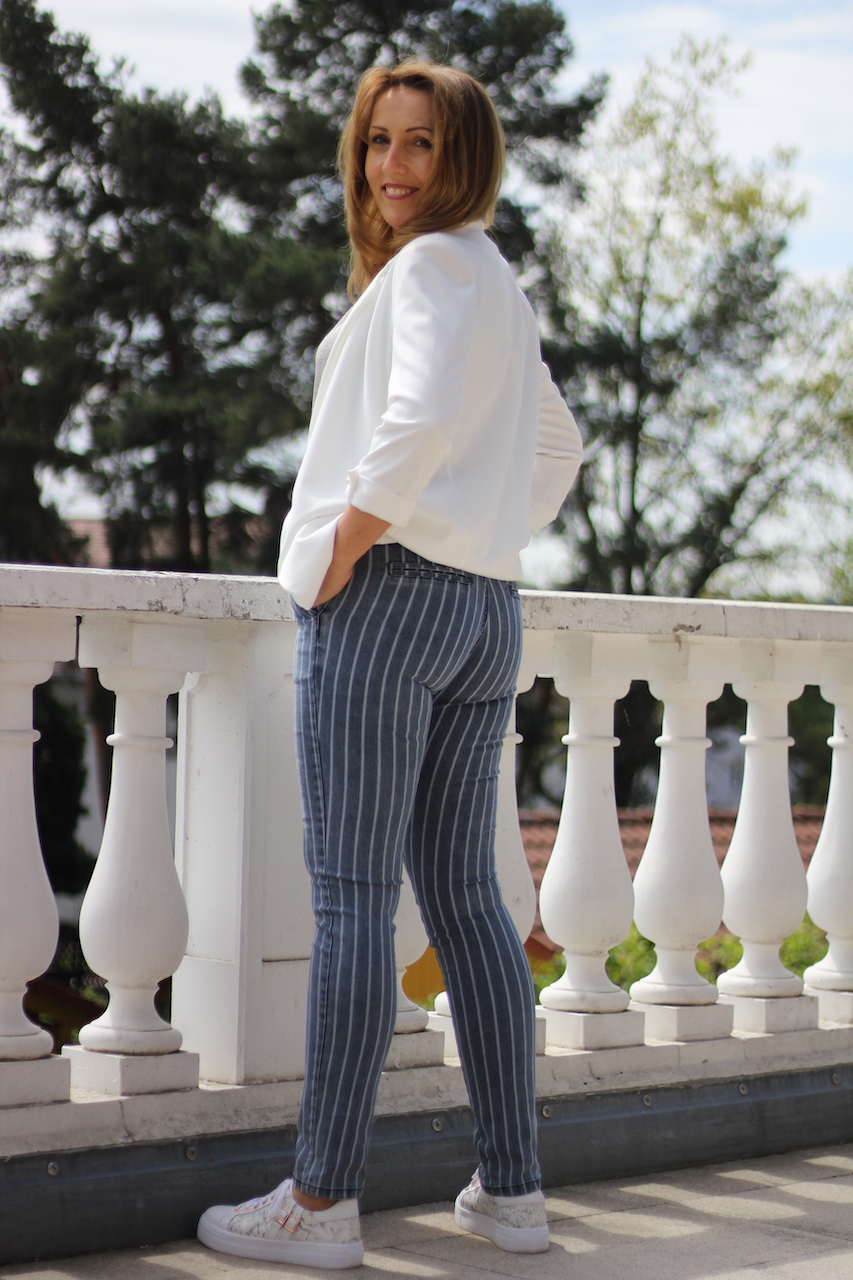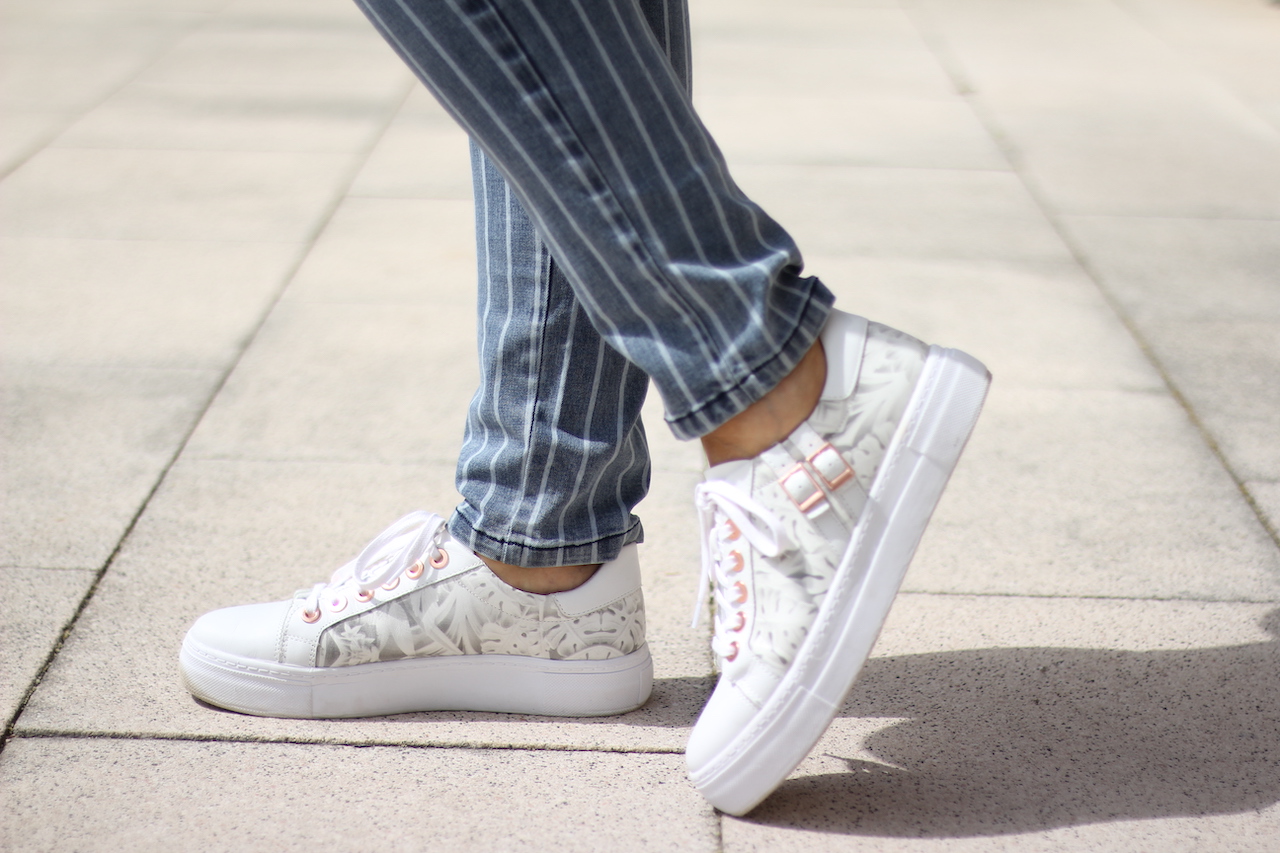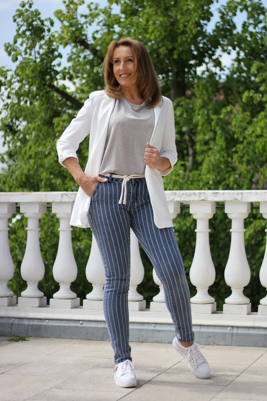 grau gestreifte Blue Monkey Jeans ´Thea´ mit weißen Kordelgürtel
