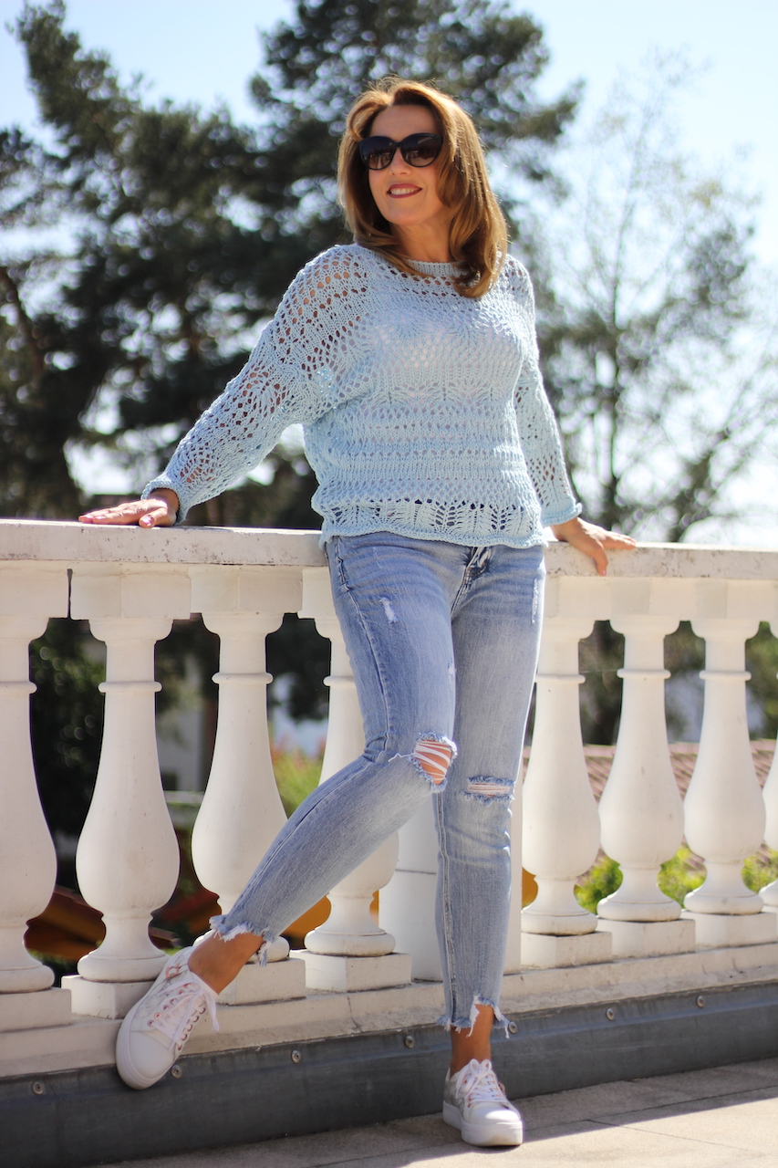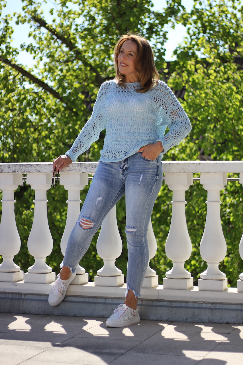 Grobstrickpulli blau in ONE SIZE