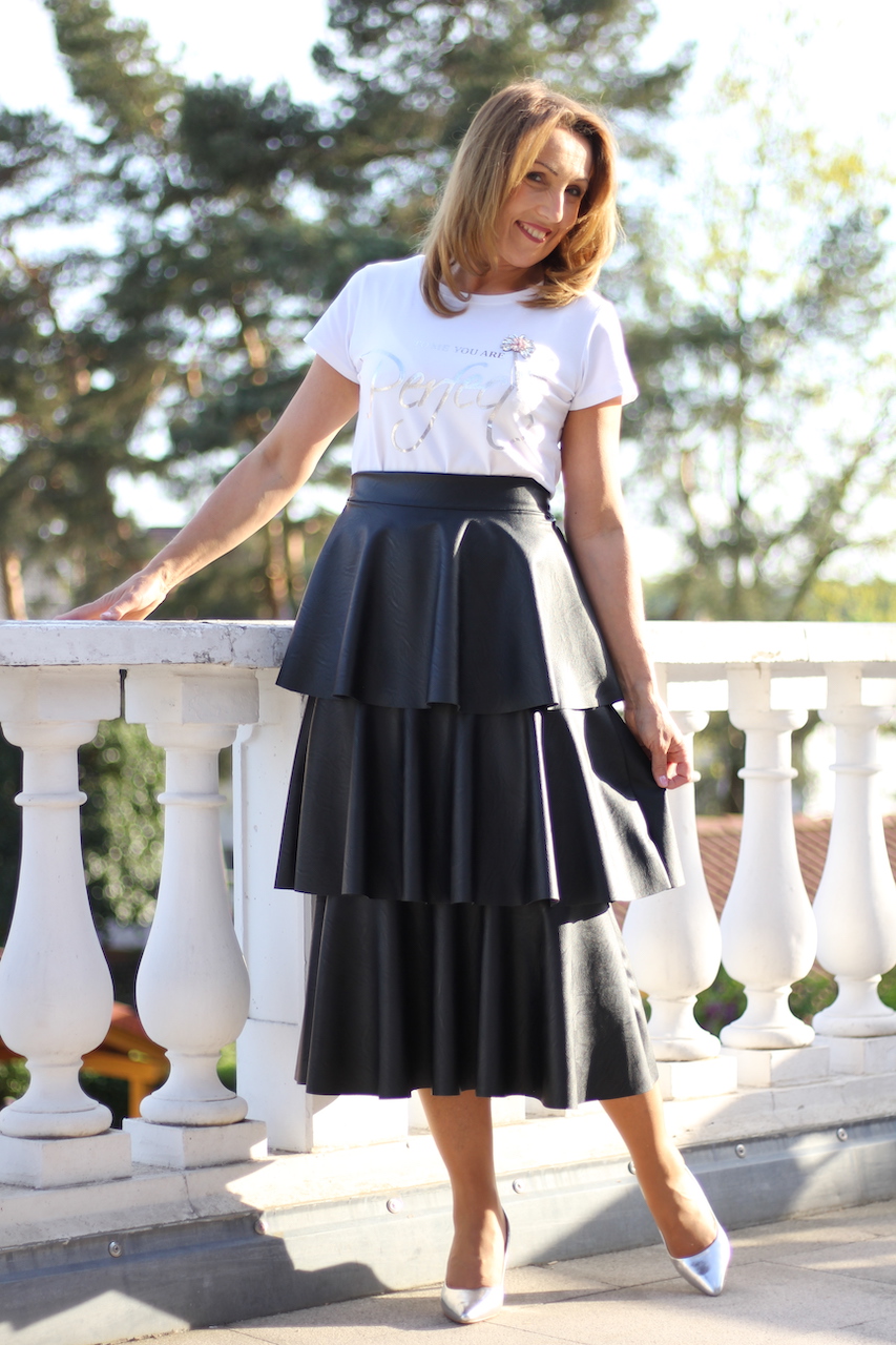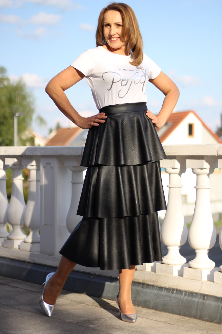 eleganter schwarzer Rock in Lederlook Optik