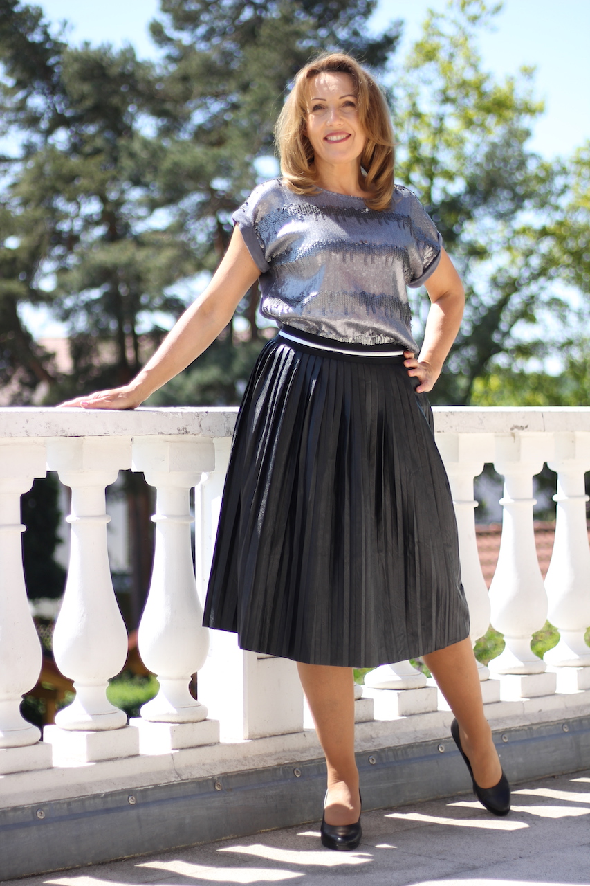 schwarzer Plisseerock im Lederlook in ONE SIZE