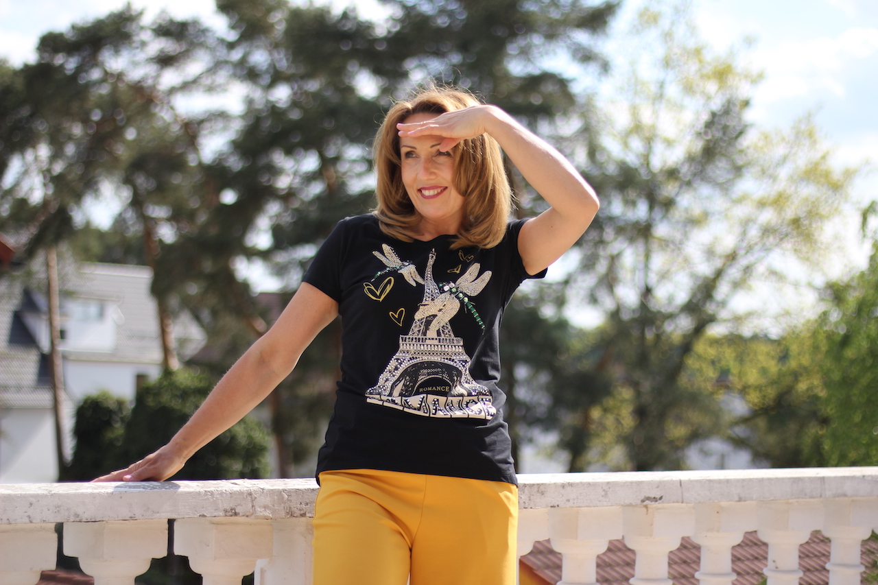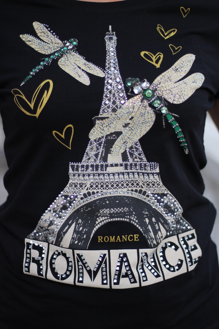 T-Shirt "Romance" in schwarz mit Glitzersteinen besetzt