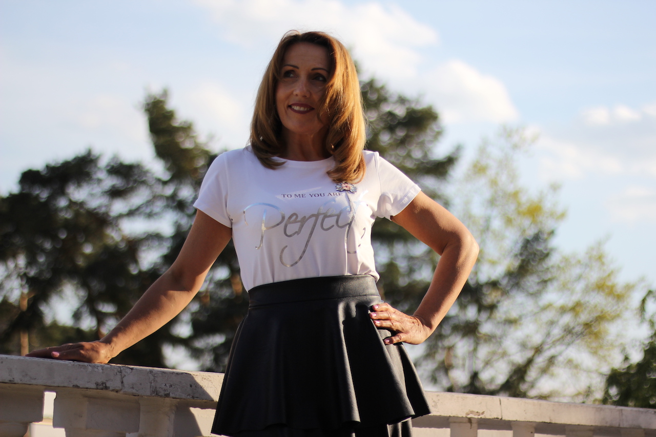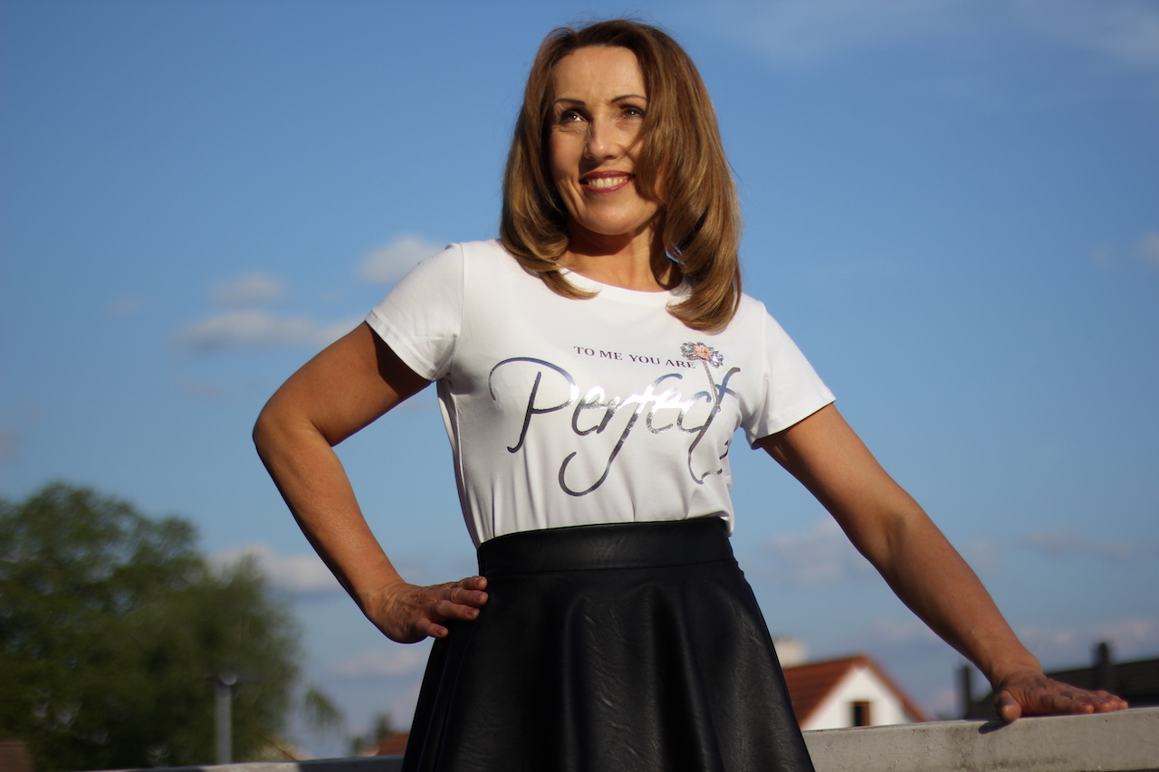 T-Shirt in weiß mit Aplikation und Statement "To me you are Perfect"