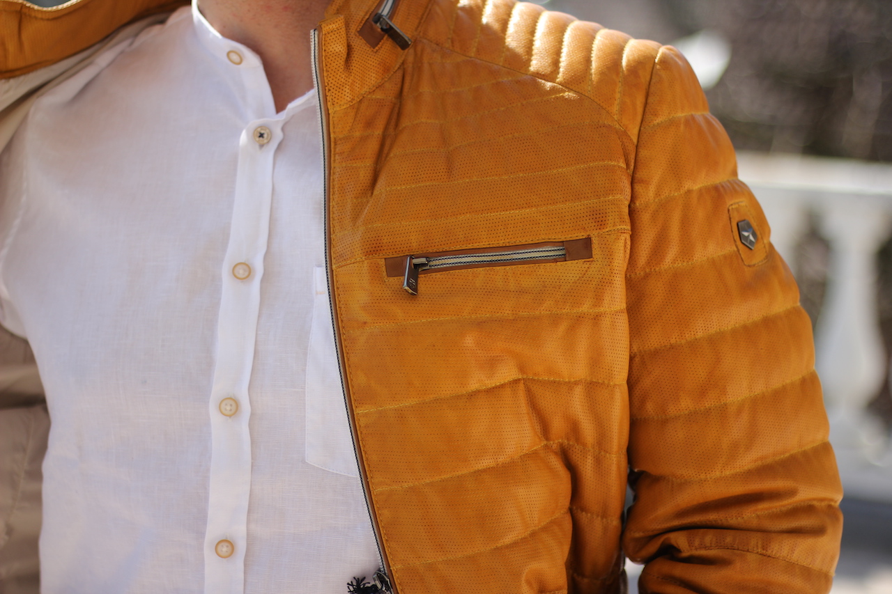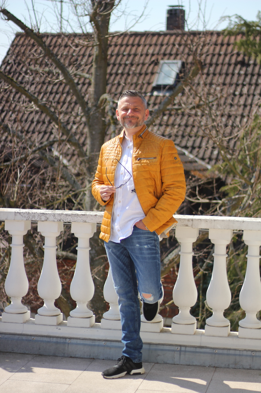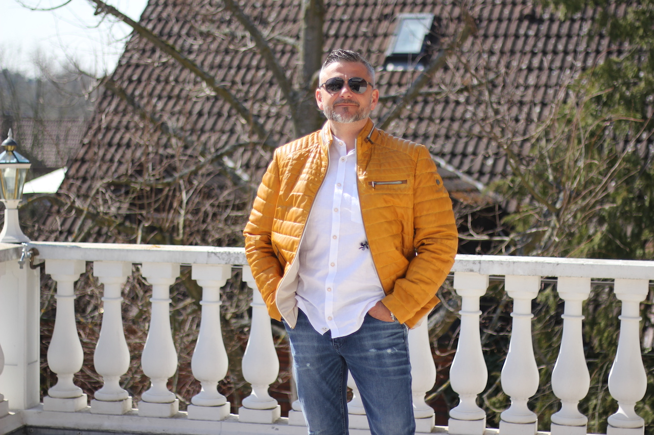 TOP trendige Lederjacke in senf-Farbe mit geraden Schnitt