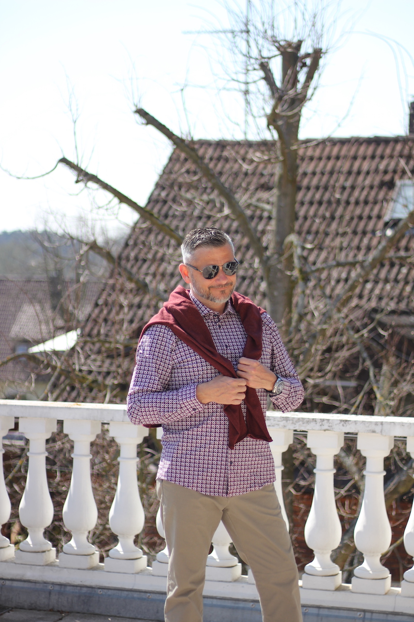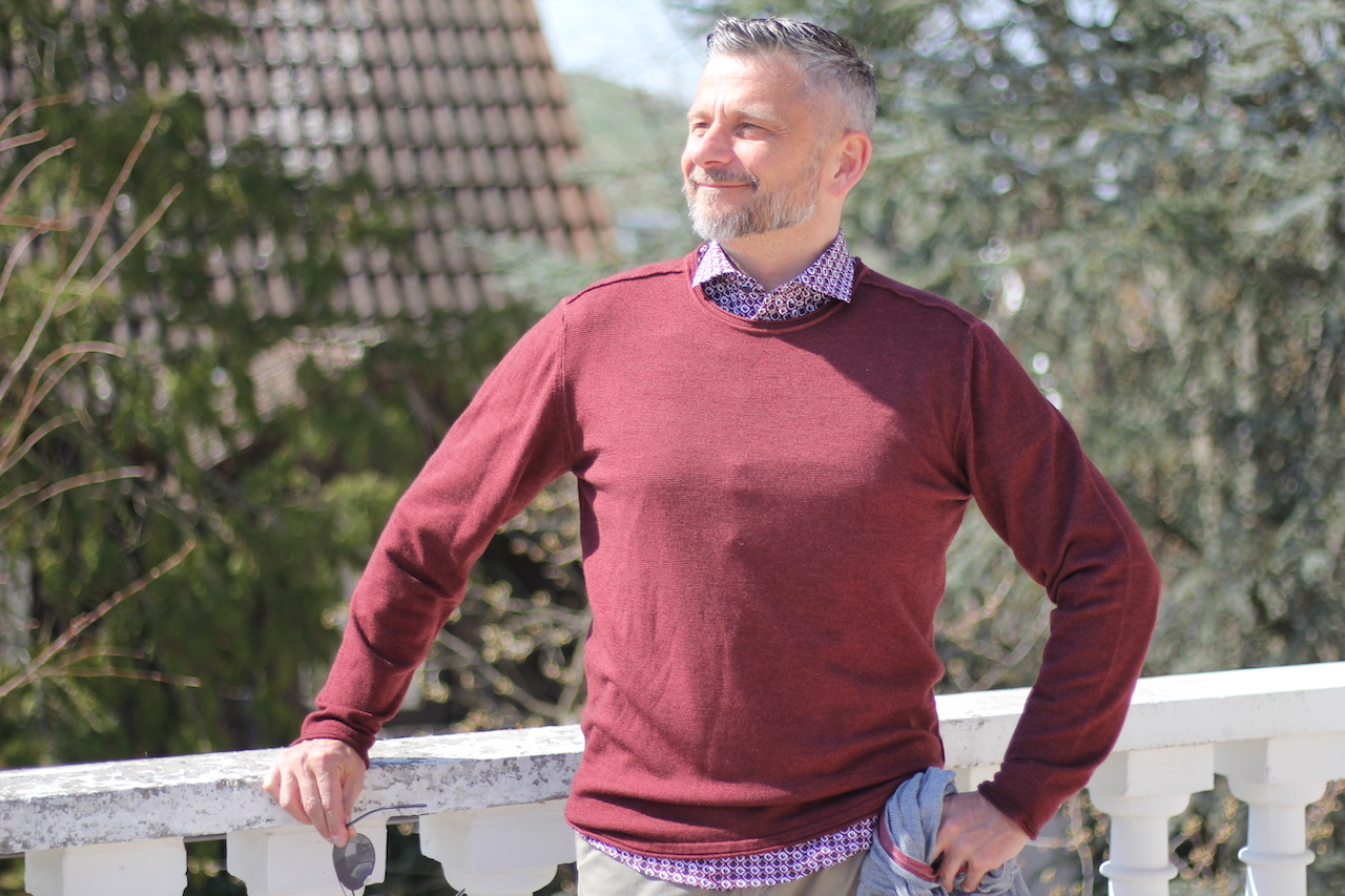 leichter bordeaux-farbener BENVENUTO-Pullover mit geradem Bund