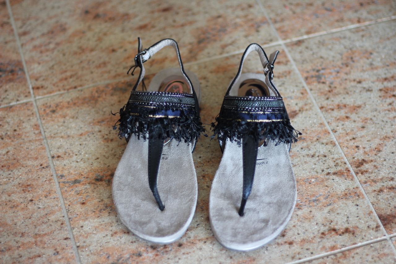 Sandalette mit Zehentrenner BLACK METALLIC
